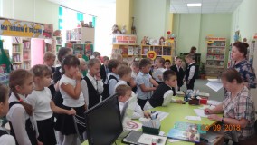 Участники мероприятия открыли для себя новый мир знаний, при помощи интерактивного портала виртуального филиала Русского музея. Читатели познакомились с творчеством художников, картины которых хранятся в фондах Русского музея. Узнали о том, какие картины писали художники во время своих путешествий и увидели их в виртуальной галерее Русского музея. Посмотрели фильм об уникальных рисунках Федора Баганца, Павла Михайлова, Антона Иванова, Алексея Вышеславцева и братьев Чернецовых, которые они привезли из своих многочисленных путешествий. Самые любознательные проверили свои знания в викторине «Живопись и художники». Каждый полистал красочные книги из фонда библиотеки о народах мира, континентах, интересных географических открытиях. Все вместе ребята приняли участие в творческой работе «Я – художник!». На каждой станции квеста отвечали на вопросы и получали "Ключи" - фрагменты карты комплекса Русского музея. В конце мероприятия ученики получили в подарок книгу от Людмилы Бубновой "Большой подарок для школьника: лучшие стихи и рассказы".