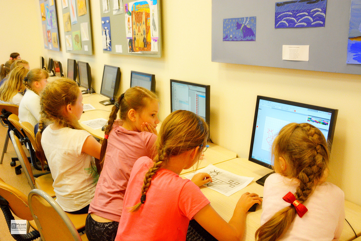 На специально разработанных занятиях дети знакомятся с разными видами искусства: живописью, скульптурой, с жанрами изобразительного искусства, такими как портрет, пейзаж, анималистический жанр. В каждое занятие включены интерактивные моменты: это и собирание огромных пазлов, разгадывание ребусов, демонстрация интерактивных программ и фильмов, виртуальные путешествия, квест-игры.