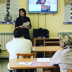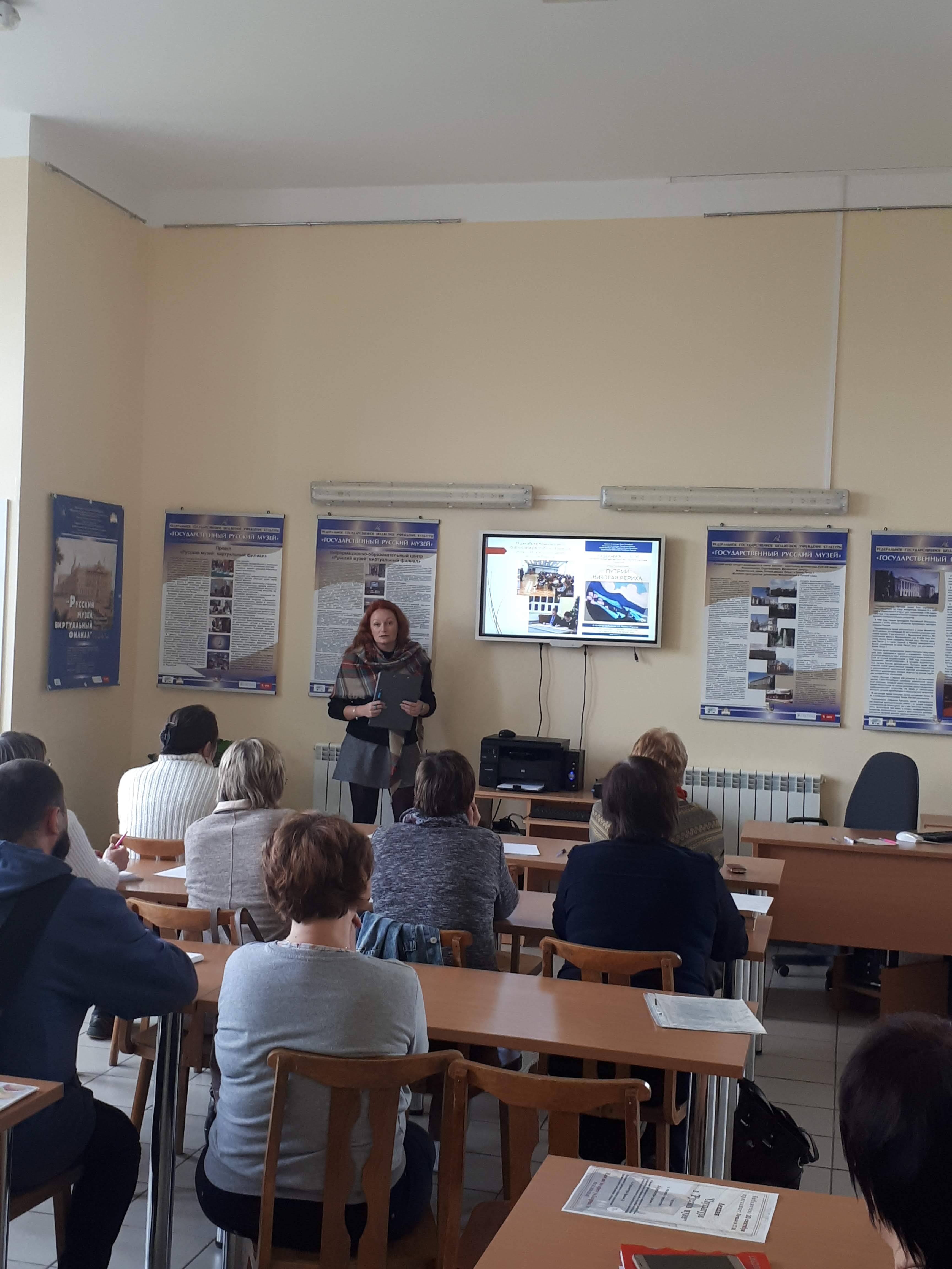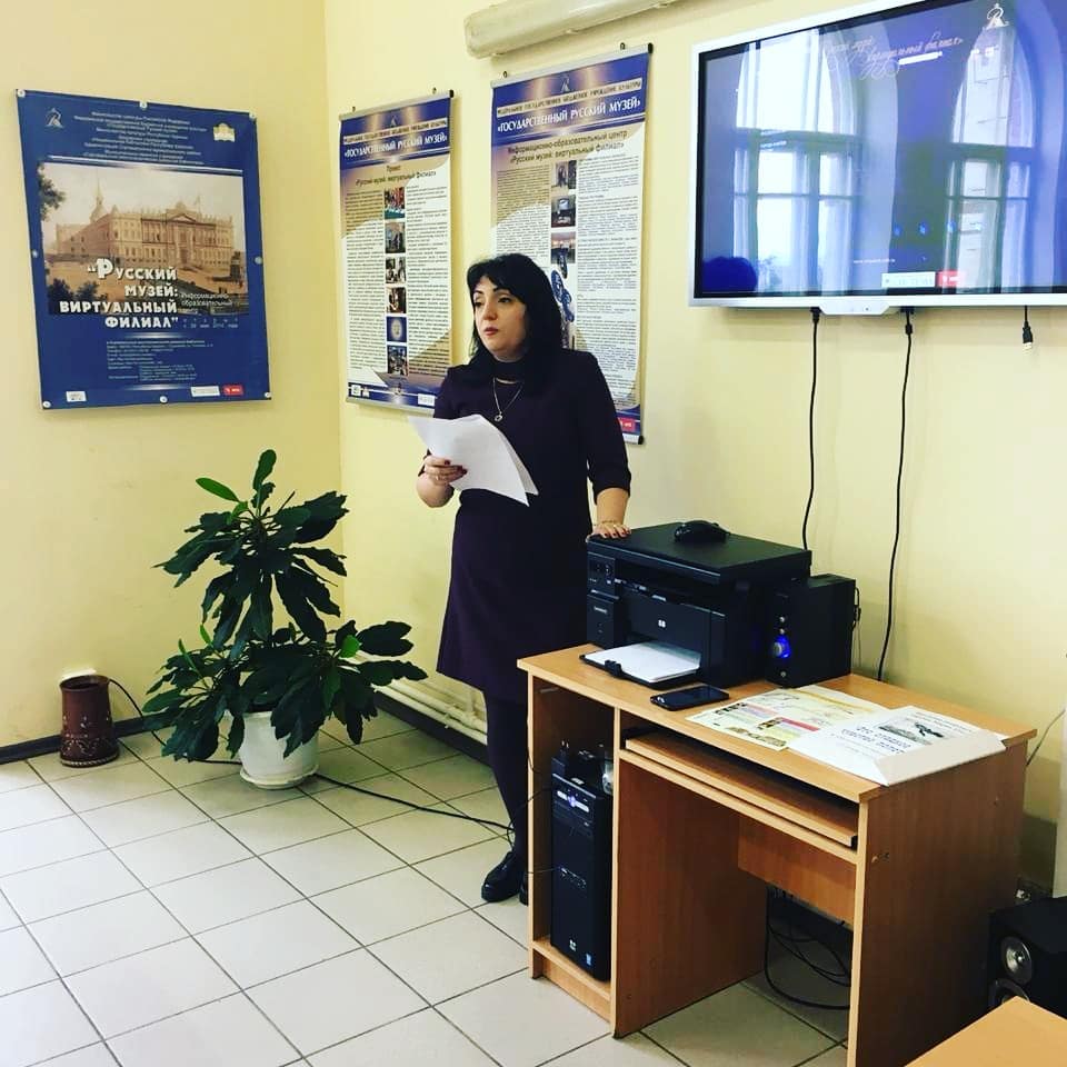 Руководитель виртуального филиала Русского музея Агабекян С. Г. рассказала о своей работе с виртуальным филиалом, показала презентацию. Для специалистов сельских библиотек было интересно узнать о возможностях филиала. Она показала, как можно воспользоваться материалами филиала и как они могут использоваться читателями библиотеки.