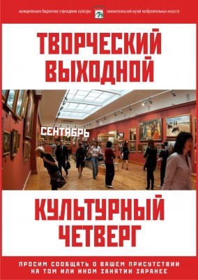 8 сентября (суббота) в 15.00 – мастер-класс «МИШКА ТЕДДИ в технике сухое валяние» Мишка Тедди – очаровательный сувенир, добрый и верный друг детства с удивительной историей, разнообразным воплощением в искусстве. Давайте познакомимся с Мишками Тедди, которых создала Людмила Мануйлова, и сделаем своих медвежат в технике сухое валяние из шерсти. Стоимость: 150 р. для взрослых, 100 р. для детей 9 сентября (воскресенье) в 15.00 – мастер-класс «ПЕЙЗАЖ акварелью» и экскурсия «Пейзажи в зале Русского искусства» Природа – русская, европейская, южная, северная – привлекало художников разных эпох. Они черпали в ней вдохновение и подмечали необыкновенную красоту. Создайте и вы свой пейзаж, используя акварельные краски. А.К.Саврасов. Серия "Русские художники" (ГРМ). Материалы: бумага формата А3, карандаш ТМ, акварель - 12 цветов, ластик, палитра, кисти. Стоимость: 150 р. для взрослых, 50 р. для детей. 13 сентября (четверг) в 18.00 – экскурсия по выставке московского живописца, Народного художника России Игоря ОБРОСОВА. Стоимость посещения музея: 150 р. для взрослых, 100 р. для студентов и пенсионеров, 50 р. для школьников. 15 сентября (суббота) в 14.00 – мастер-класс «Традиционное ткачество пояса на «дощечках (картах, топках)» Занятие проводит Галина Бортникова – мастер по традиционному плетению и ткачеству, которая проходила обучение в этнографических экспедициях Российского этнографического музея (Г. Санкт-Петербург). Продолжительность – 3-4 часа. Количество мест ограничено, просим сообщать о Вашем участии в мастер-классе ЗАРАНЕЕ по телефону 25-26-47. Стоимость: 300 рублей 16 сентября (воскресенье) в 15.00 – беседа из цикла лекций «Цвет и свет в изобразительном искусстве» № 1 «Знакомство со СВЕТОМ» Свет нас окружает почти всегда, он позволяет видеть окружающий мир. Световые изменения моментально преобразуют окружающую действительность, меняют отношения к ней. Но что мы знаем о свете? На занятии Вы узнаете множество интересных фактов о нем. Стоимость: 150 Р. для взрослых, 100 р. для детей 20 сентября (четверг) в 18.00 – лекция кандидата исторических наук Татьяны МЕЗЕНИНОЙ «Люди, вещи и время (из истории Строгановских коллекций)» Автор – Татьяна Геннадьевна Мезенина, кандидат исторических наук, доцент, автор публикаций о роде Строгановых и истории их владений на Урале. Стоимость посещения музея: 150 р. для взрослых, 100 р. для студентов и пенсионеров, 50 р. для школьников. 22 сентября (суббота) в 15.00 – мастер-класс реставратора скульптуры Владимира БЕКЕТОВА «Отливка из гипса». Почувствуйте себя настоящим скульптором! Вы сможете поработать со скульптурными материалами, инструментами и создать работу из гипса, которая украсит ваш дом или станет уникальным подарком. Количество мест ограничено, просим сообщать о Вашем участии в мастер-классе ЗАРАНЕЕ по телефону: 25-26-47. Стоимость: 300 р. для взрослых, 200 р. для детей. 23 сентября (воскресенье) в 15.00 – экскурсия по выставке скульптора Владимира ПАВЛЕНКО «Избранное…» С именем Владимира Ильича Павленко связано развитие монументального искусства на Урале. Владимир Павленко – автор памятников, скульптур, которые можно увидеть в Нижнем Тагиле, Перми, Салехарде, Хебе (Чехия) и других городах. В Нижнем Тагиле - это памятник Г.К. Орджоникидзе (1991), памятник металлургам НТМК (2010), скульптура «Гора Высокая» (2015). На камерной выставке к 75-летию представлены скульпт