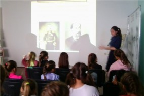 Дети из пришкольного лагеря МБОУ «СОШ № 27» расположились в зале с приглушенным светом и большим экраном для знакомства с картинами Василия Сурикова. Дети познакомились с биографией мастера русского искусства, особенно заинтересовались фактом его происхождения. Узнали о том, что любой художник, помимо всего прочего, это очень сосредоточенный и организованный человек. Поняли, что талантливый человек на заре своего становления нуждается в поддержке. Рассмотрели многие картины, хранящиеся в коллекции Государственного Русского музея и Государственной Третьяковской галереи.