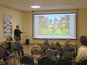 Во всех группах Солнечного детского сада ребята и воспитатели готовятся к традиционному осеннему празднику. 18 октября воспитанники средней группы (4-5 лет) посетили Солнечную сельскую библиотеку виртуальный филиал Русского музея и Народную картинную галерею, чтобы познакомиться с темой осени на картинах русских художников. Малыши послушали сказку М.Скребцовой «Хвойный лес: солнечное дерево». А на экране увидели репродукции картин с изображением осени от «золотой», (ранней) до поздней ее поры. В библиотеке посмотрели книги от самой маленькой до самой большой, которую смогли удержать только все вместе. У выставки книг послушали осенние стихи и спели песню, которую готовят для выступления на утреннике.