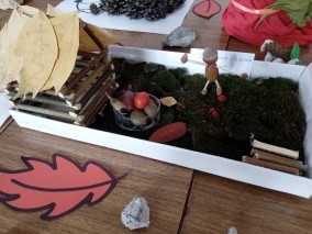 В течение месяца ребята готовили материалы для своих поделок: делали заготовки из сухих листьев, собирали шишки и веточки, знакомились с литературой из фонда библиотеки, в которой представлены различные техники и примеры изготовления поделок из природного материала. Кому-то понравилось творить по образцу, кому-то – придумывать собственные уникальные работы. Для своих поделок школьники использовали ресурсы богатой осенней цветовой палитры, в результате чего у каждого ребенка получилась своя неповторимая работа.