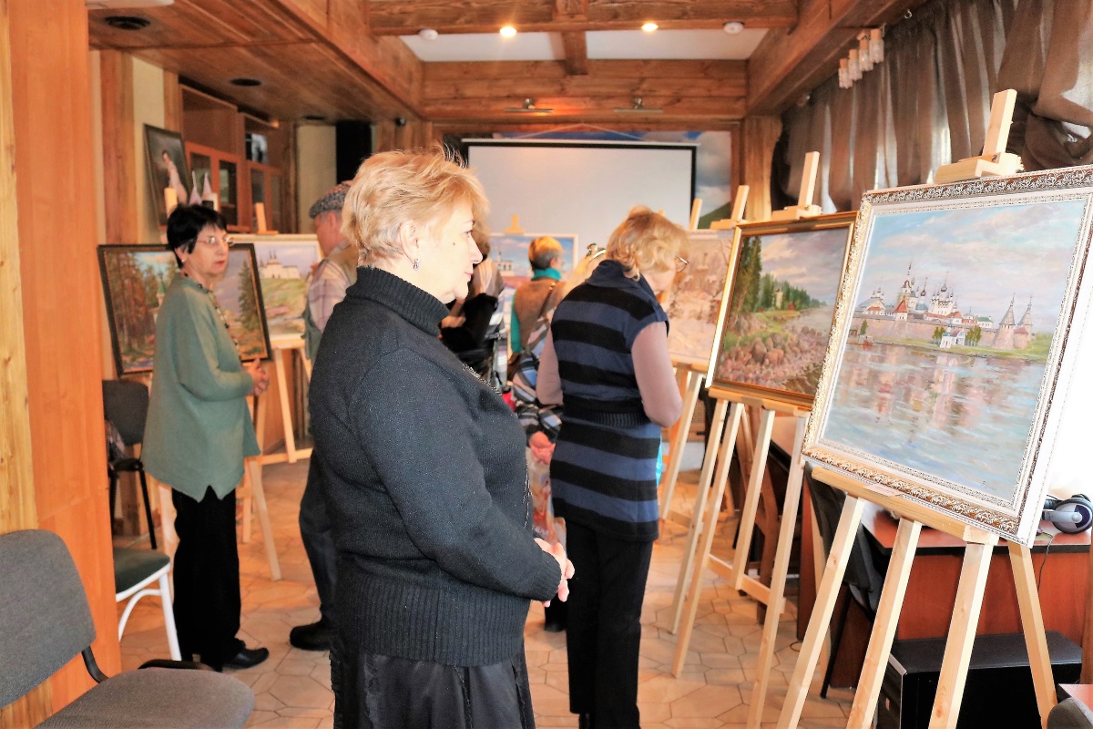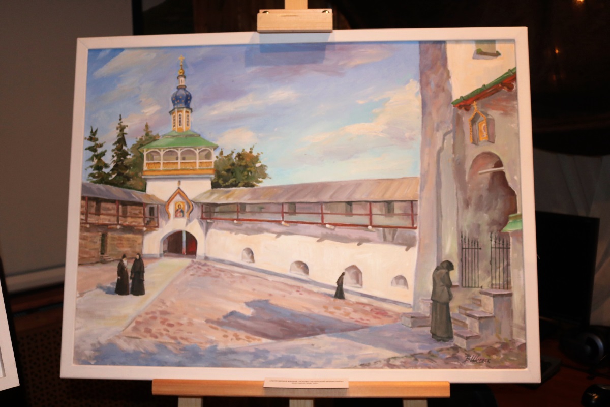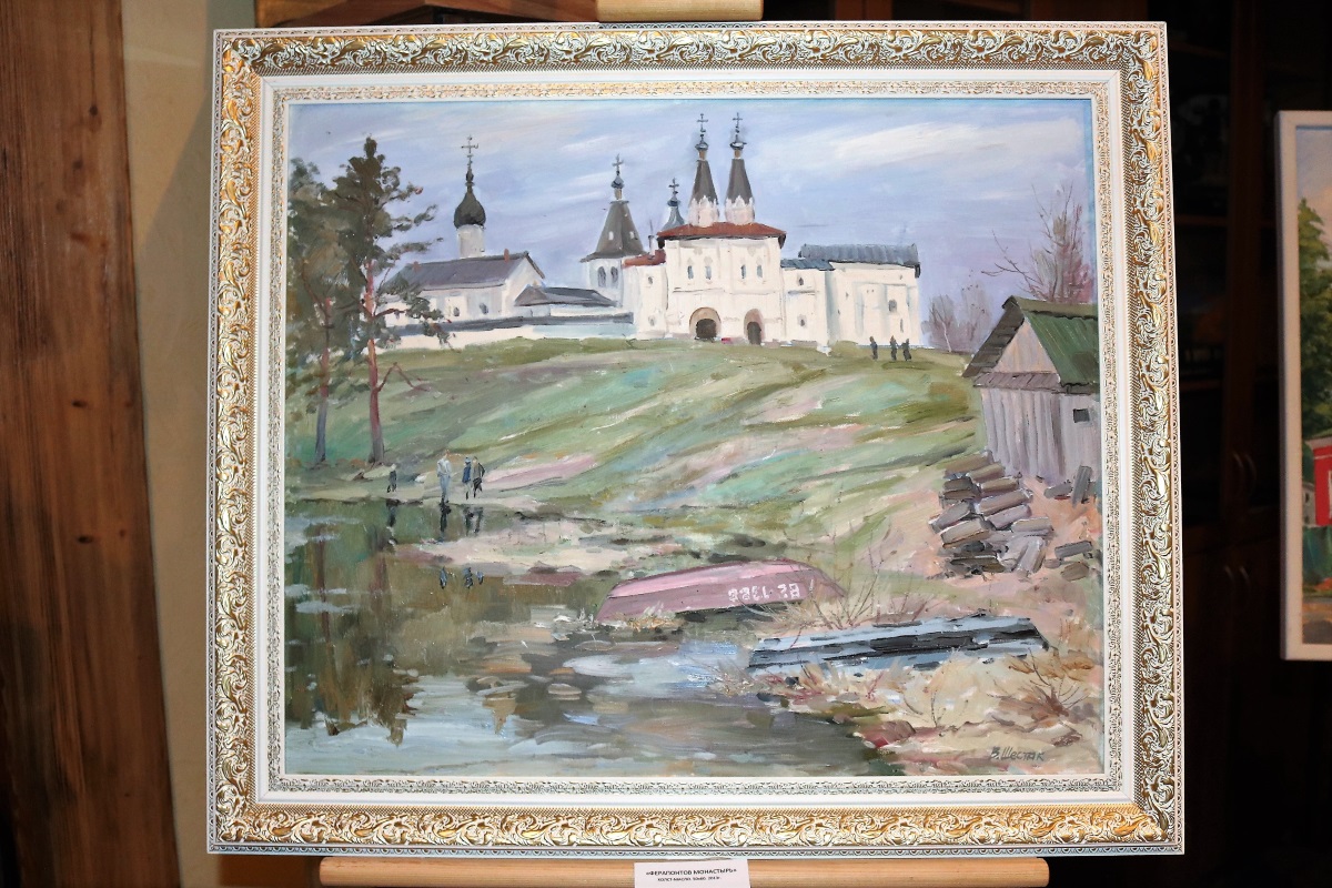 На выставке представлены пейзажи Старой Ладоги,  изображения мест, где художник путешествует с коллегами, участниками Творческого объединения «Очарованный странник» – это  Изборск, Псково-Печерский монастырь, Соловецкий монастырь,  Ферапонтово, Великий Новгород и многие другие святые места России.