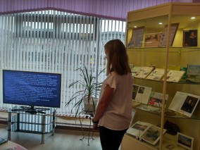 Всю неделю в выставочном зале работала озвученная выставка-просмотр «Да здравствует Лицей!». Специально для этой выставки библиотекарь зала искусства Ольга Николаевна Лыженкова подготовила слайд-шоу по материалам электронного каталога «Герои и злодеи русской истории» из Медиатеки Русского музея. Посетители библиотеки смогли полюбоваться репродукциями портретов Александра Сергеевича Пушкина и его современников.