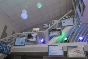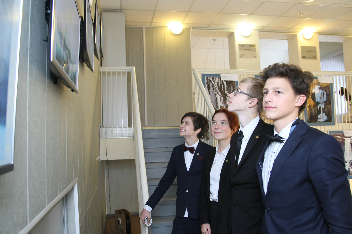 Посетители могут самостоятельно изучить информацию о представленных работах на интерактивном столе, а по окончании осмотра, проверить полученные знания, пройдя небольшую тест-игру.