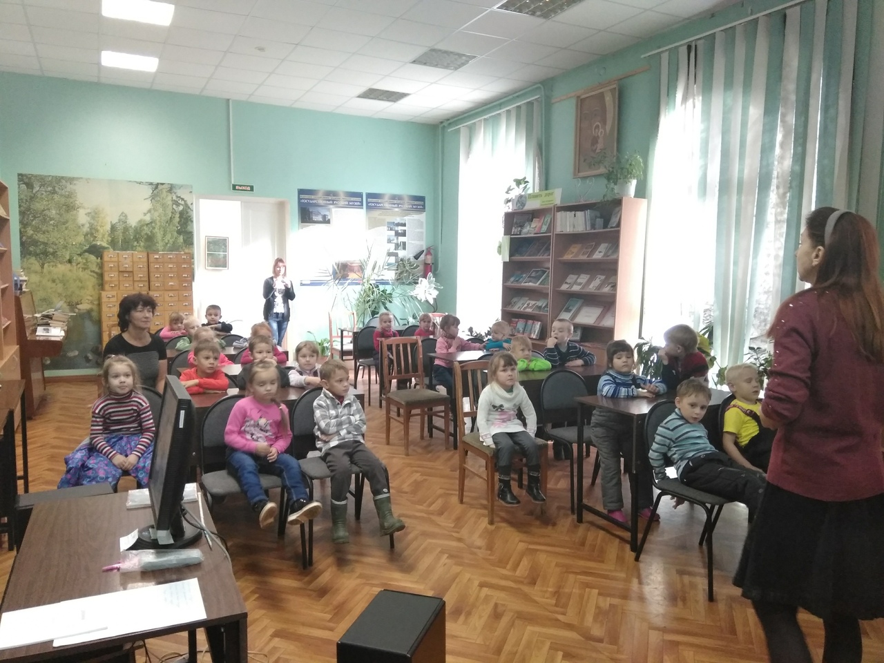 9 октября на первое занятие в виртуальном филиале Русского музея Пикалевской центральной библиотеки пришли ребятки старшей группы Детского сада №2. После экскурсии по библиотеке малыши посмотрели выставки « Безбрежна к малой родине любовь» (творческая мастерская «Лоскутное шитье и народная кукла») и в выставочном зале - «Ностальгия» (картины Кирилловой Г.Т.). А в читальном зале послушали рассказ о создании Русского музея, посмотрели презентацию «Русский музей», вместе с Хрюшей и Степашкой узнали: что означает слово «музей», какие музеи бывают, как вести себя в музее.