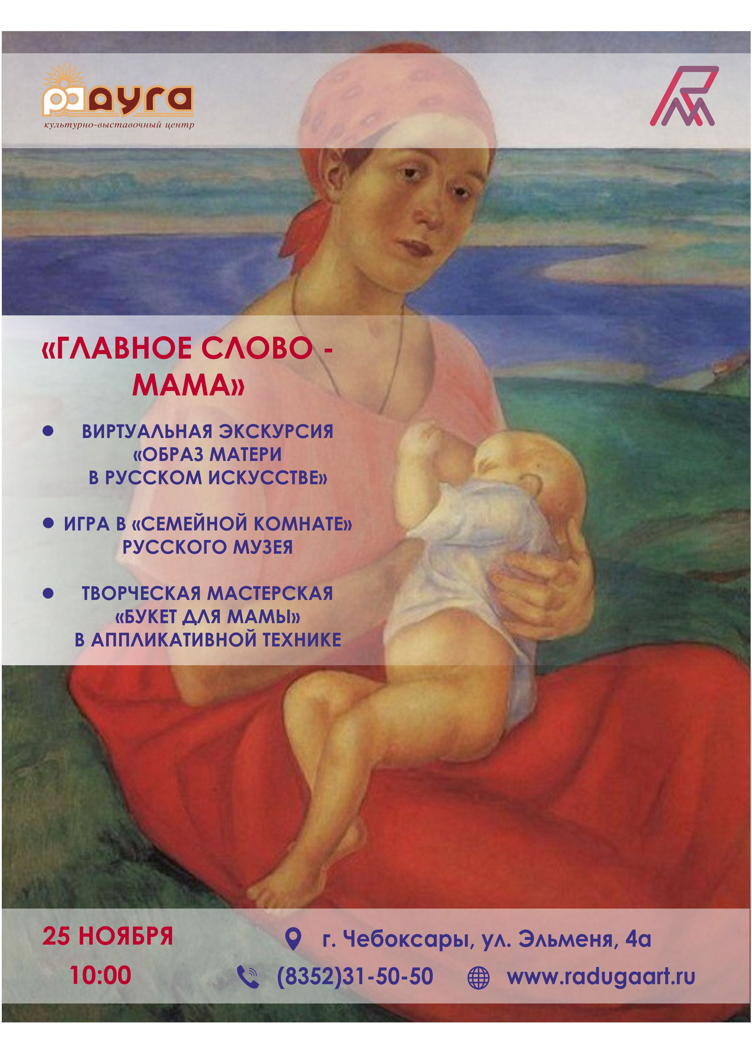 25 ноября в виртуальном филиале Русского музея в КВЦ «Радуга» состоялось для детей и взрослых праздничное музейное занятие «Главное слово - МАМА», посвященное Международному Дню Матери.