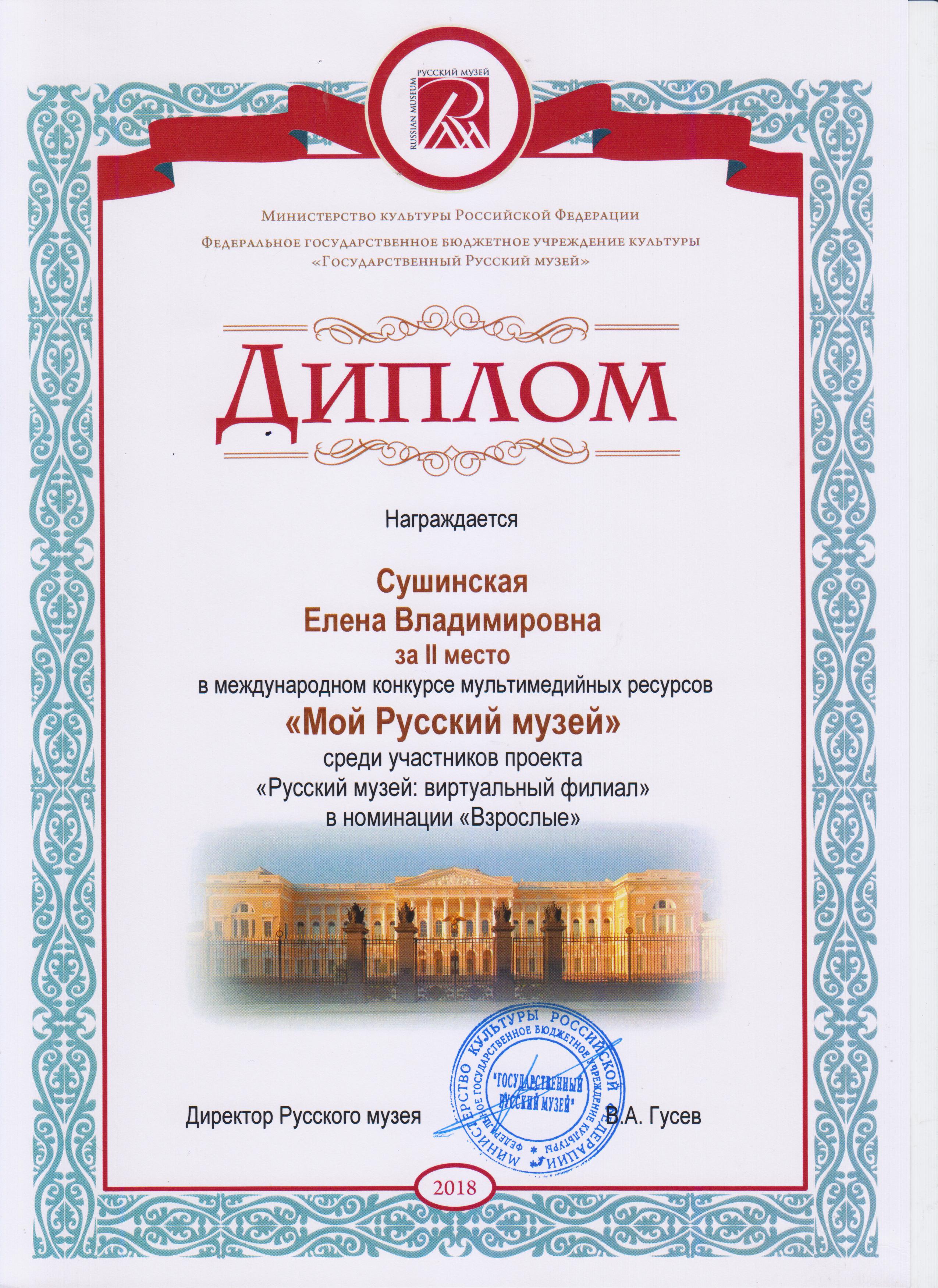 12 ноября 2018 г. в Георгиевском зале Михайловского замка в рамках международной научно-практической конференции «Музейное наследие и цифровая культура», посвященной 15-летию проекта «Русский музей: виртуальный филиал», состоялось торжественное награждение победителей VII международного конкурса мультимедийных ресурсов «Мой Русский музей».