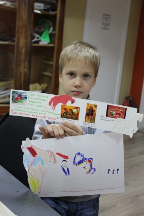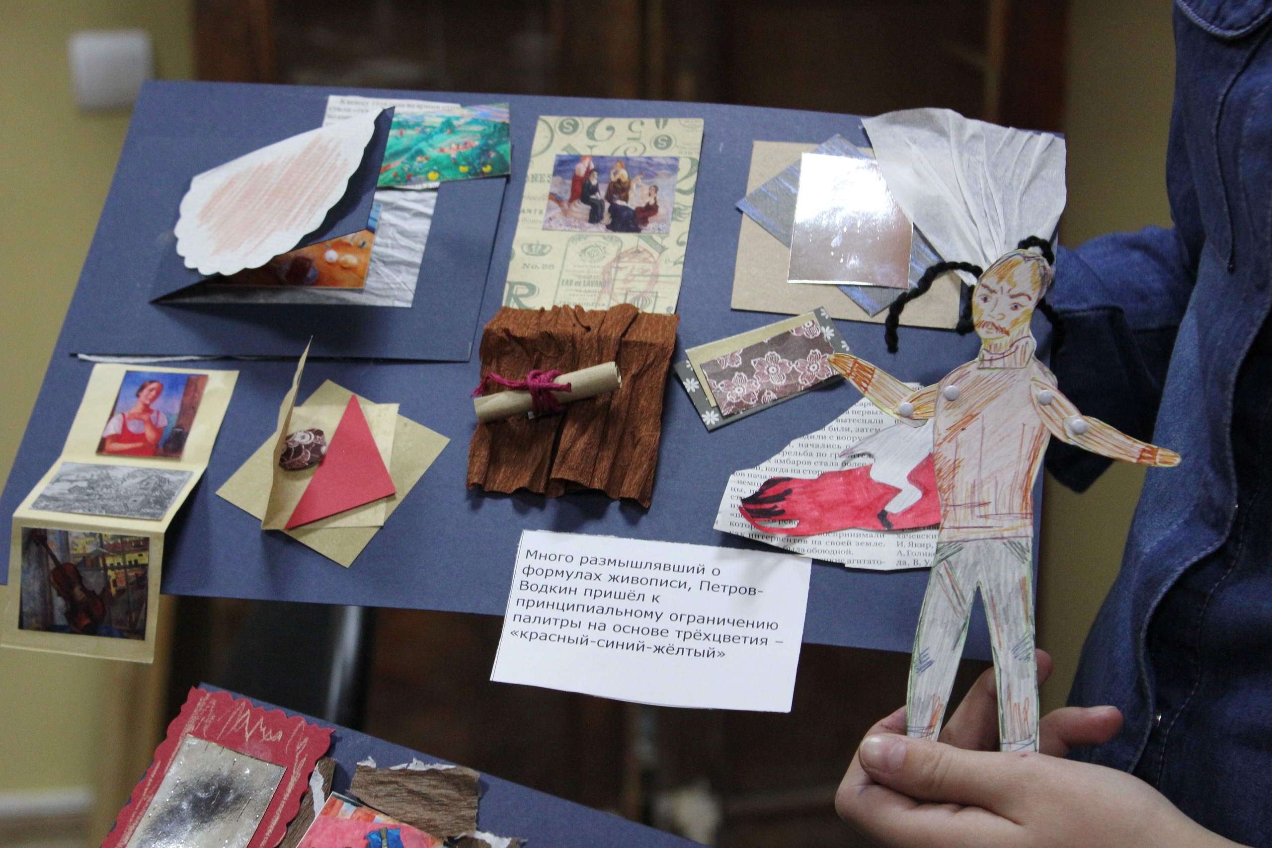 В информационно-образовательном центре «Русский музей: виртуальный филиал» состоялись интерактивные занятия для детей. Ребята совершали виртуальную прогулку по выставке «Кузьма Сергеевич Петров-Водкин» и участвовали в мастер-классах. С ребятами из младшей группы (6-9 лет) мы познакомились с творчеством К.С.Петрова-Водкина, говорили о древнерусском искусстве и выяснили, как оно повлияло на художника. На карте заданий мы отмечали, где обитают красные кони и создали коллаж по мотивам картины «Фантазия». А ребята из старшей группы (10-15 лет) работали над изображением мастерской художника - появились свитки, столики, книги с заметками о художнике. Многие из ребят успели дополнить коллаж подвижной фигуркой художника или героя картины.