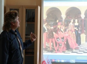 Вместе со своим педагогом школьники с энтузиазмом отыскивали недостающие цвета в палитрах картин русских живописцев в интерактивной игре «Радуга», старались угадать время суток, отраженное в пейзажах Поленова, Шишкина, Кустодиева и Венецианова.
