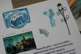 Последний день путешествия – наше четвёртое занятие! Мы вспоминали дворцы и парки, смотрели фрагменты видеофильма о живописном Петербурге. А на мастер-классе заполняли карту заданий - зарисовывали городские талисманы, превращали котов в грифонов и мастерили подвижные мосты на заклёпках. В ИОЦ «Русский музей: виртуальный филиал» ребята также самостоятельно исследовали дворцовый комплекс Русского музея.