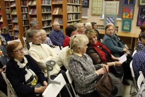 В преддверии очередной годовщины Октябрьской революции зрители старшего поколения посетили программу "Праздники на Дворцовой. Недавнее прошлое", на которой смогли окунуться в переломные и судьбоносные события нашей страны начала века 20-го. Гостям для просмотра был предложен видео фильм «Праздники на Дворцовой. Две картины из одной эпохи» из медиатеки виртуального филиала. Кинолекторий предварял небольшой рассказ об истории создания картин и о тех материалах, которые были использованы при съемке фильма. Гостям программы напомнили об особенностях искусства на рубеже эпох, а также о том, что Борис Кустодиев, знаменитый «Купчихой» и "Масленицами", после прихода к власти большевиков вдохновенно в своих картинах изображал новую жизнь советской страны. Также гости познакомились с малоизвестным учеником основоположника «аналитического искусства» Филонова - Купцовым, особенностями творческого процесса этих художников. Оживление у зрителей вызвала представленная в конце фильма компьютерная анимация картин, позволяющая "войти в картину" и перенестись в указанную эпоху. Завершился просмотр обсуждением увиденного и дружеской беседой за чашкой чая.