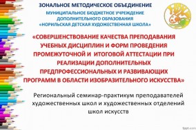 Тема семинара: «Совершенствование качества преподавания учебных дисциплин и форм проведения промежуточной и итоговой аттестации при реализации дополнительных предпрофессиональных и развивающих программ в области изобразительного искусства».