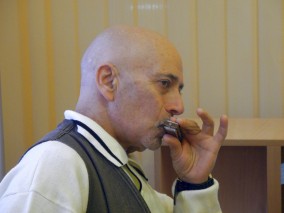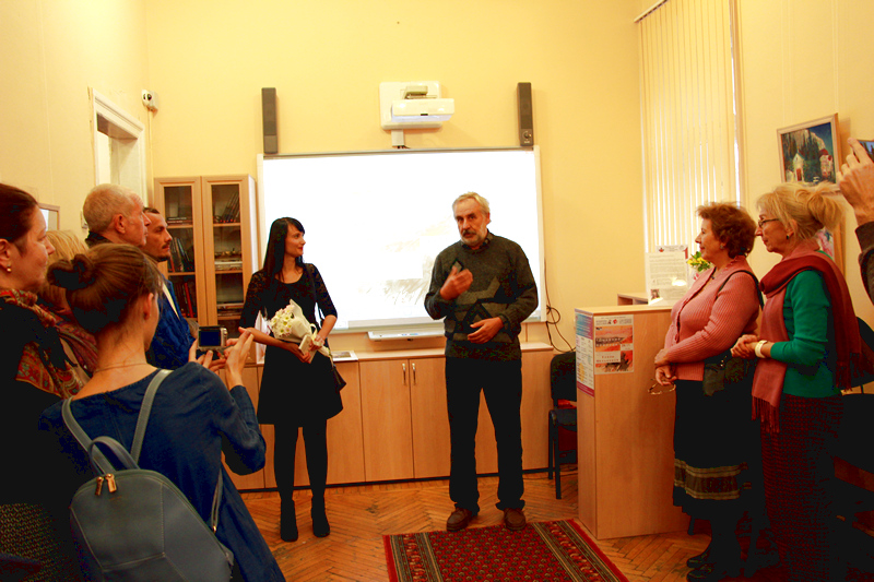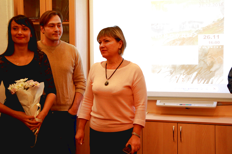 Декламированием стихов Тихона Синицына под губную гармонику Дмитрия Футермана завершился творческий вечер в нашей библиотеке. Однако настоящая жизнь выставки и ее насыщенный диалог со зрителем в этот день только начались.