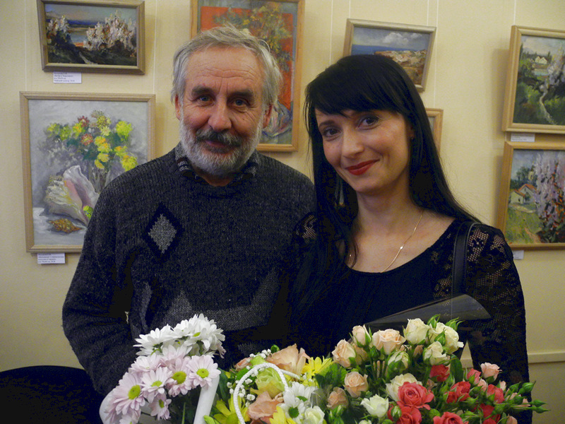 В окружении ярких букетов цветов Елена сияла улыбкой, запечатлеваемая на фото с любимым преподавателем живописи Николаем Карповым.