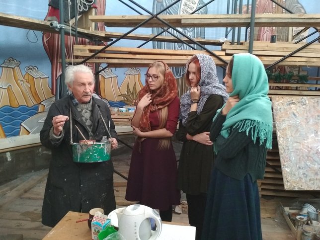 1 декабря 2018 г. под куполом собора св. Александра Невского прошла встреча студентов кафедры монументально-декоративного искусства с художником-монументалистом Миловановым П.А. Петр Алексеевич рассказал студентам о ходе реставрации, созданных под его руководством, росписей, объяснил тонкости технологии, стилистические особенности и иконографическую программу живописного убранства собора.