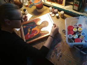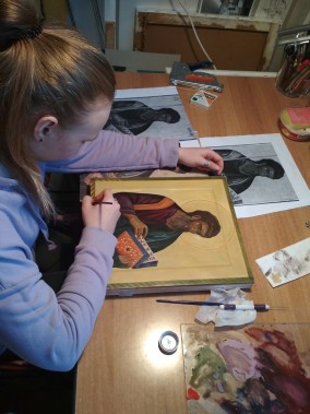 В осеннем семестре 2018-2019 учебного года студенты 2 курса кафедры монументально-декоративного искусства (МДИ) НГУАДИ в рамках дисциплины "Основы художесвенного производства" изучают технику темпера на примерах выполнения копий образцов иконы. В рамках изучения технологии иконописи студенты прослушали авторский курс лекций «Иконография христианского искусства» (лектор доцент кафедры МДИ Татьяна Викторовна Прохорова), а также под руководством Ирины Петровны Шавшиной, руководителя виртуального филиала Русского музея, познакомились с тематическими видеофильмами и мультимедийными программами медиатеки Русского музея: