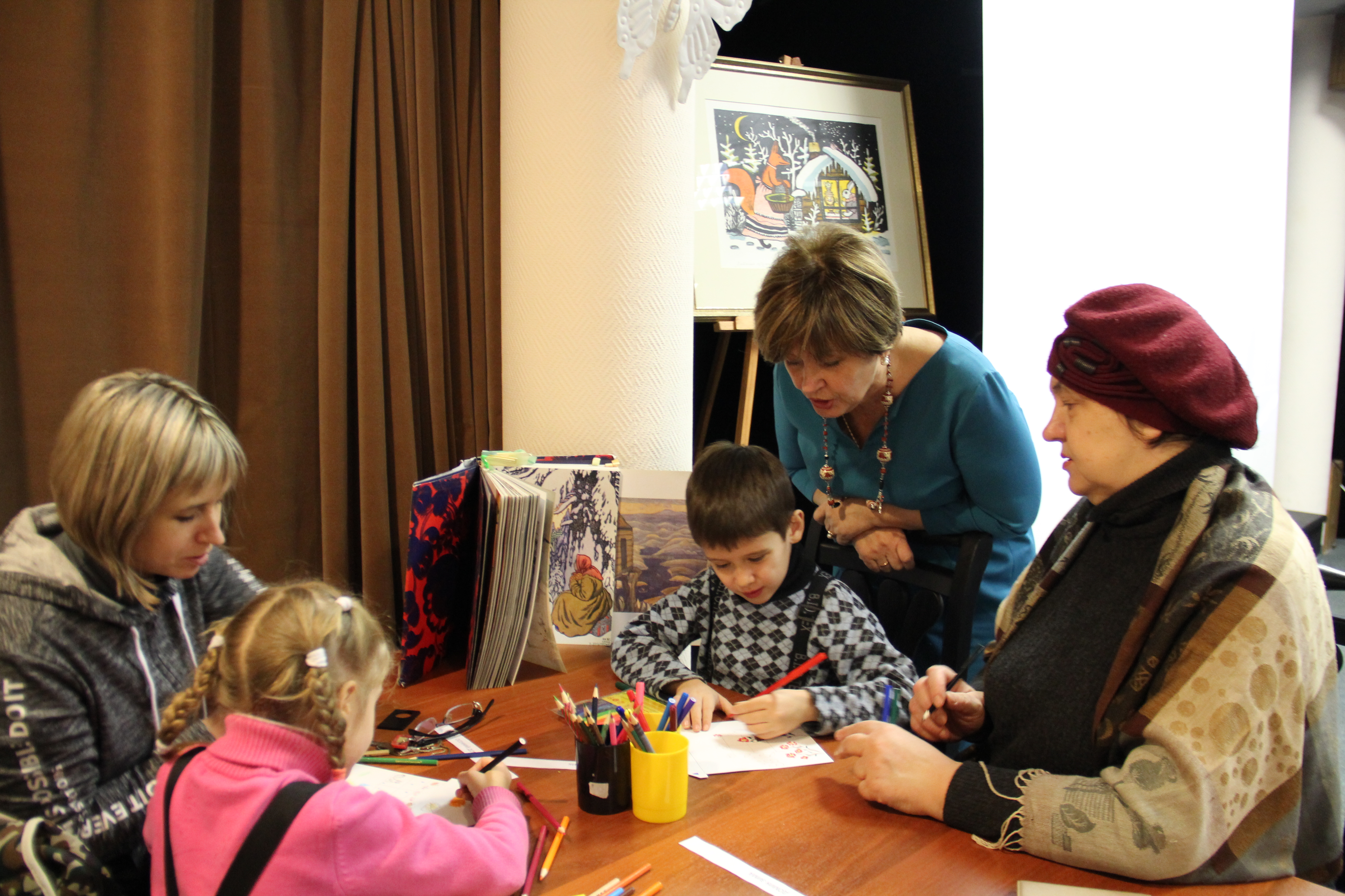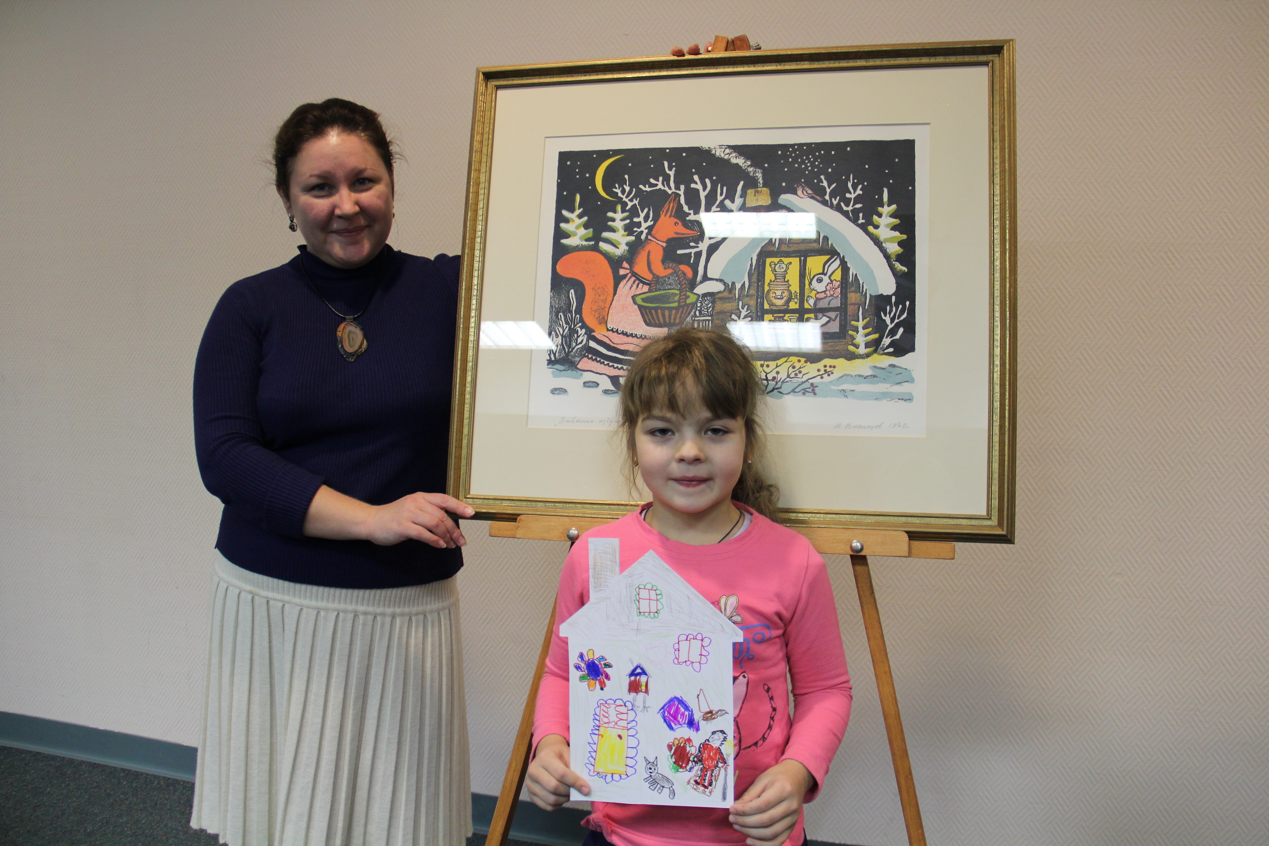 На нашей экскурсии, мы вспомнили известные русские сказки, рассматривая картины знаменитых художников В.Васнецова и И.Билибина, а так же В. Максимова «Бабушкины сказки». Дети рассуждали о добре и зле, о характерах сказочных персонажей.