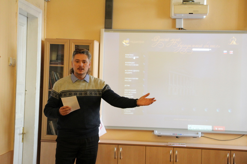 Лекция открыла новые горизонты исследований пространства культуры и того богатого наследия, которое представлено во всем его многообразии на ресурсе международного проекта "Виртуальный Русский Музей". Вместе с «Путеводителем», позволяющим создать для зрителя эффект присутствия, юные студенты попали в вестибюль Музея Александра Третьего (Санкт-Петербург) - ныне крупнейшего музея отечественного искусства.
