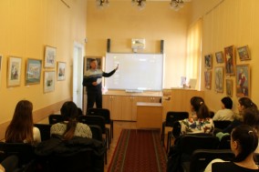 В зале Информационно-образовательного центра «Русский музей: виртуальный филиал» в ЦГБ им. Л. Н. Толстого прошла обзорная лекция. Ее основой стала мультимедийная и книжная коллекции Центра, а слушателями и зрителями студенты севастопольского педагогического колледжа им. П. К. Менькова.