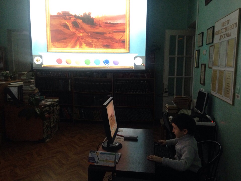 25 декабря в виртуальный филиал Русского музея Пикалевской центральной библиотеки на первое занятие "Знакомство с Русским музеем" пришли ученики 1 "Б" класса школы №2. Ребятки посмотрели выставку вышитых полотенец и скатертей "Распахнулись просторы, в которых не тесно душе" и выставку детских рисунков "И не хотелось так прощатся с осенней краскою цветов" оформленных в библиотеке. А в читальном зале узнали об истории создания Русского музея и поиграли в интересную компьютерную игру "Светлячки".