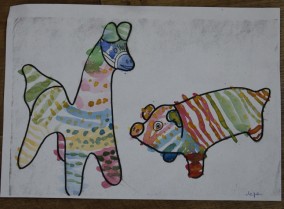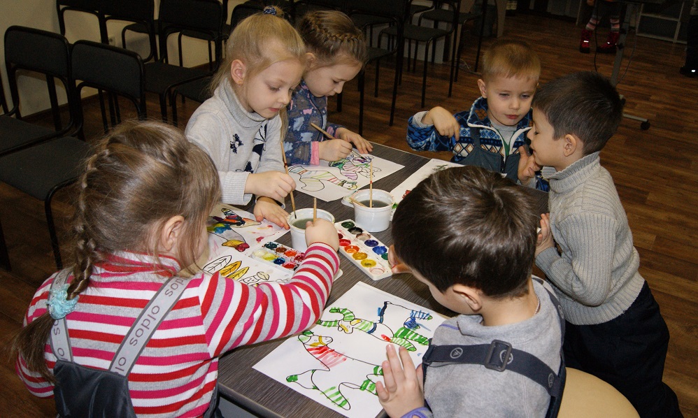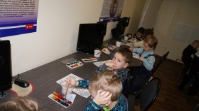 22 января в виртуальный филиал Русского музея пришли совсем юные посетители – воспитанники детского сада №2. Ребятишки впервые оказались в виртуальном филиале, всё им было здесь интересно. Для них было проведено занятие из цикла «Добрым людям на загляденье», посвящённое филимоновской игрушке. Несмотря на свой юный возраст, дети очень внимательно слушали и смотрели рассказ о филимоновской игрушке. В детском саду ребята немножко знакомились с народными промыслами, а сегодня, благодаря медиатеке виртуального филиала и виртуальному туру по музейному комплексу virtual.rusmuseumvrm.ru, филимонвская игрушка предстала перед ними во всей красе – яркая, пёстрая, сказочная. А для лучшего запоминания маленькие художники сами расписали бумажные шаблоны с изображёнными барынями и кавалерами, свинками и лошадками, петухами и коровами. Возможно, кто-то из ребят не совсем ровно нанёс классические полоски, крестики и ёлочки, перепутал цвет, но старались все.