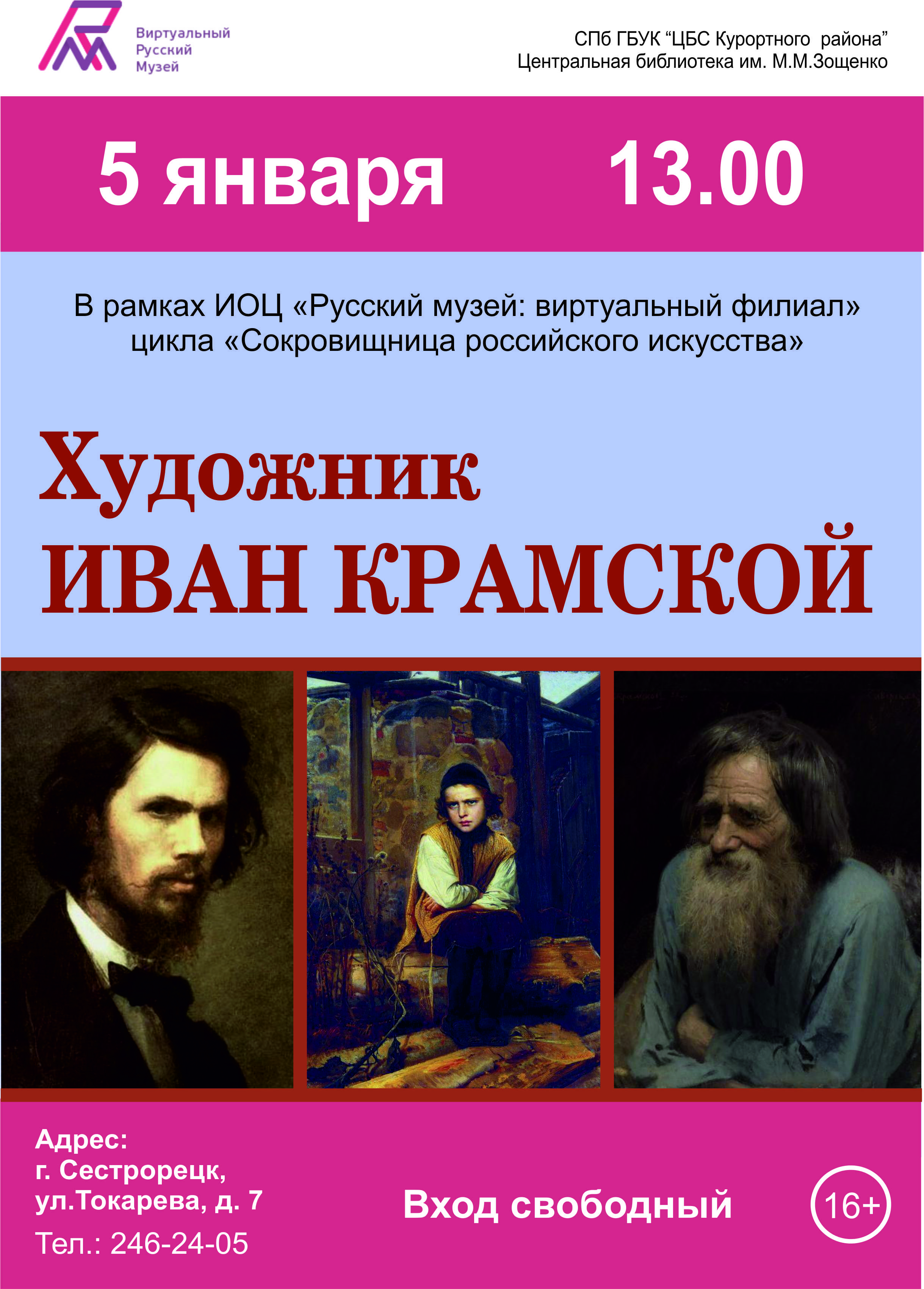 05 января 2019 года состоялась очередная встреча из цикла "Сокровищница российского искусства", посвященная художнику Ивану Крамскому.