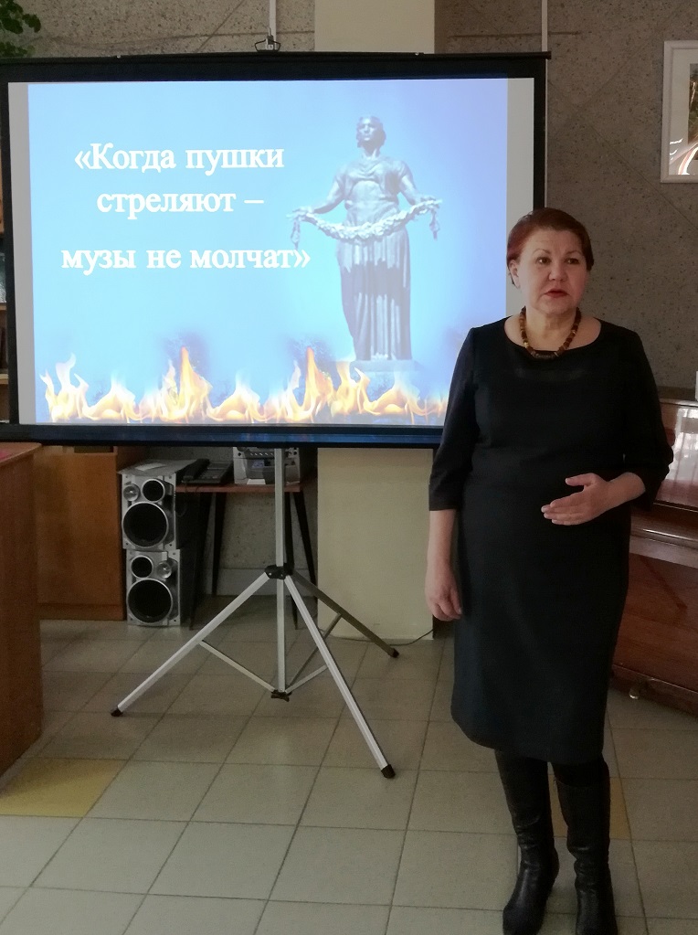 На уроках ведущая Ирина Липатникова рассказывала о событиях и людях, о жизни и искусстве блокадного Ленинграда. О том, какую роль сыграло искусство в эти трагические дни.
