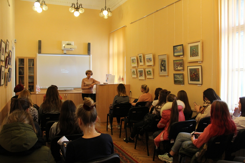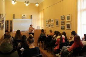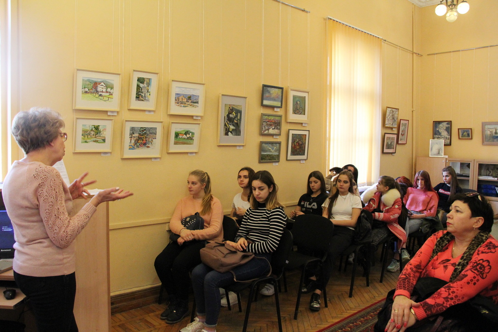 Севастопольским студентам провела лекцию сотрудник Отдела краеведения Виктория Анатольевна Невзорова. На встрече гости узнали о достопримечательностях города-героя Севастополя и его окрестностей, связанных с жизнью генерала-лейтенанта Евгения Ивановича Жидилова.