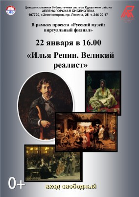 22 января состоялась лекция о жизненном и творческом пути Ильи Ефимовича Репина (1844-1930) - русского живописца, педагога, профессора, члена Императорской Академии художеств.