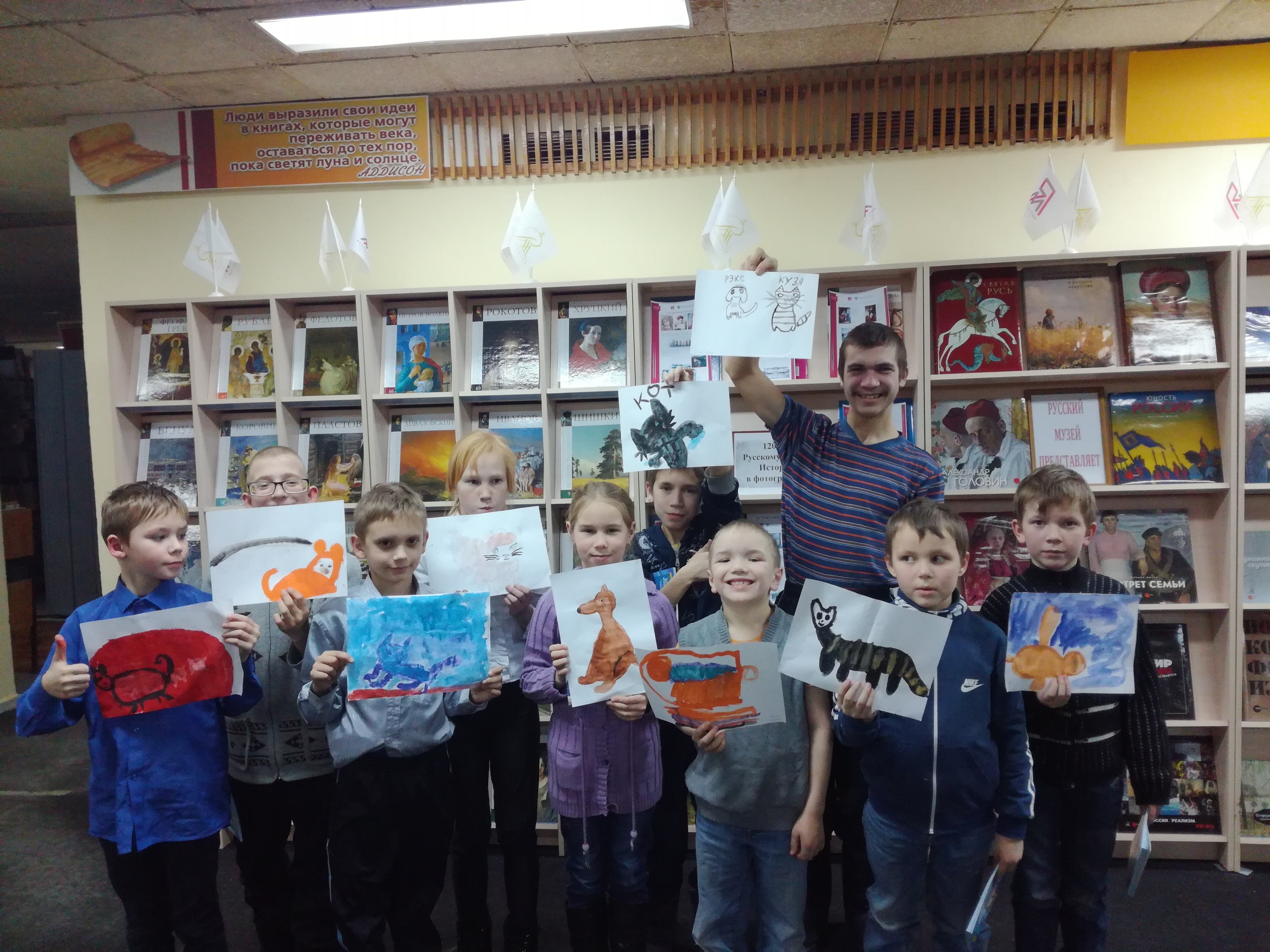 17 января 2019 г. постоянные посетители читального зала библиотеки «Дворец книги» посмотрели фильм из цикла видеофильмов «В страну музеев вместе с Фафалей» - «Существо». Как всегда, на столах перед ребятами лежали кисточки и краски. Фильм еще не закончился, а на бумаге уже прорисовывались очертания собак и кошек. Спасибо ребятам за их добрые фантазии и спасибо Русскому музею за предоставленную возможность показывать интересные, познавательные фильмы и программы тем, кто приходит в библиотеку.