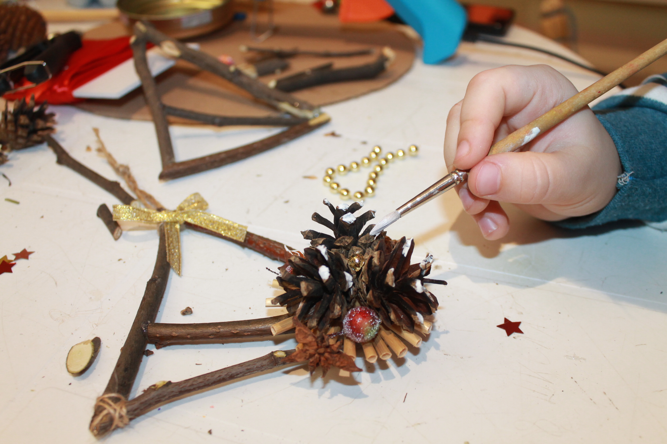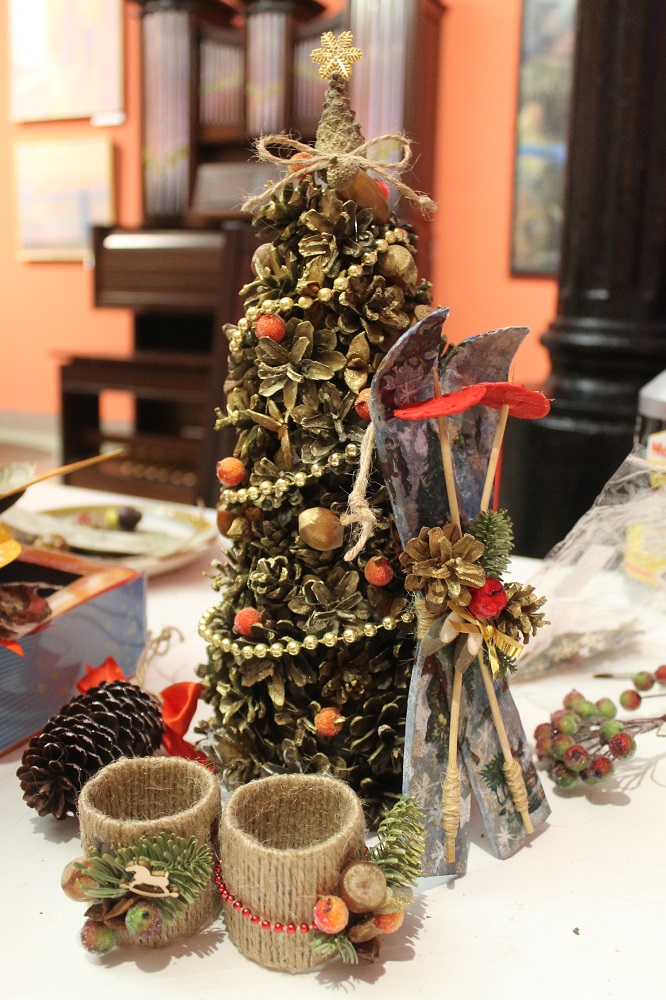 2-3 января, в первые дни работы музея в новом году, мы предложили своим посетителям мастер-класс под руководством методиста музея Елены Сандаковой по изготовлению новогодних композиций из природных материалов: рождественский венок, ёлочный подвес в виде украшенной шишками звезды, а также декоративную ёлку из шишек.
