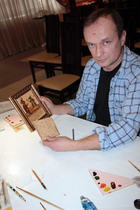 5-6 января состоялся мастер-класс росписи по бересте, который провел специалист экспозиционно-выставочного отдела Сергей Орлов. Мастер росписи по бересте художник Сергей Орлов известен далеко за пределами Калуги и области. Его работы находятся в музеях и частных собраниях в России и за рубежом. Сюжеты для своих работ С. Орлов черпает в лубочных картинках XIX века, отображающих исторические факты.