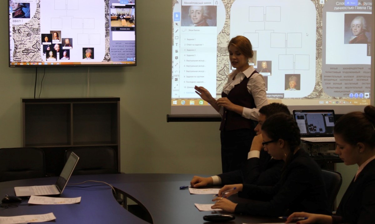Ученики 11 классов вместе с педагогом по искусству и руководителем Виртуального филиала Русского музея в школе № 547 совершили увлекательную виртуальную экскурсию по одному из известнейших дворцов Санкт-Петербурга - Михайловскому замку. Внимательно изучив современные экспозиции замка, ребята также вспомнили историю его постройки, а также историю жизни его владельца - императора Павла I и его семьи. Данная экскурсия проходила в режиме online не только в рамках программы Виртуального Русского музея - мы связались по Skype с Культурно-образовательным центром Russlingo KIDS e.V. из г. Бремен (Федеративная Республика Германия), благодаря чему воспитанники Центра смогли принять участие в этой интереснейшей экскурсии вместе с учениками нашей школы.
