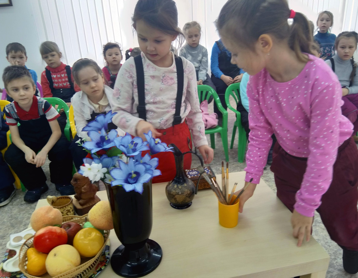 Самые юные посетители Культурно-выставочного центра «Радуга» продолжают знакомиться с «Азбукой живописи». На очередной встрече в феврале дошколята открыли чудо натюрморта, совершив интересное путешествие по выставке из Фонда детского творчества Русского музея «Прекрасное в простом: натюрморт глазами детей».
