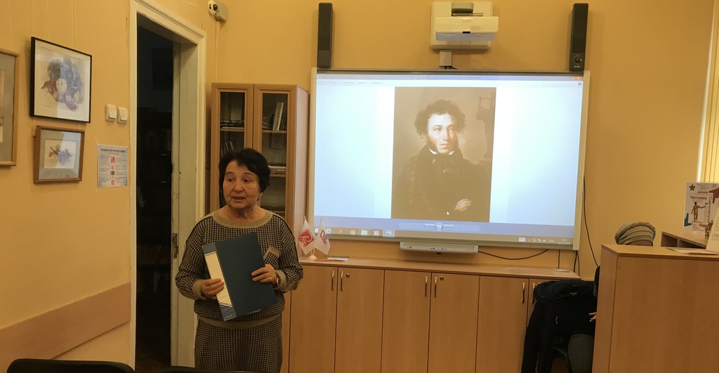 На этот раз встреча была посвящена пушкинским дням. Вспомнили основные вехи творчества, узнали о музах поэта, читали стихи. Рассказ главного библиотекаря Отдела искусств А. А. Богодуховой сопровождался великолепным иллюстративным рядом (программа КОМП). Акварельные, живописные портреты транслировались на смартдоске в высоком качестве, и, конечно, помогли получить впечатление о возвышенной красоте, которой жила эпоха.