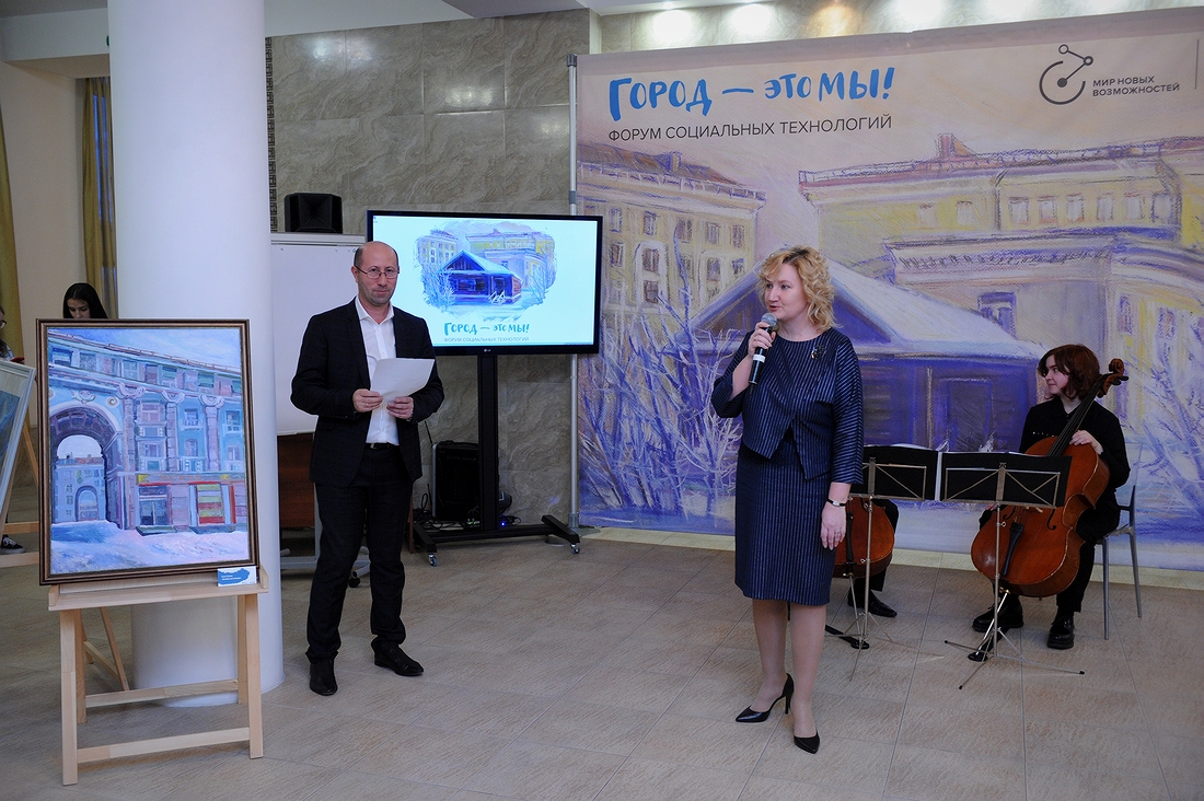 В феврале в Норильске в рамках благотворительной программы «Мир новых возможностей» компании «Норникель» состоялся ежегодный форум социальных технологий «Город — это мы!». Ключевой темой форума стало обустройство общественных городских пространств. Эта тема объединила и творчество норильских художников – форум открылся выставкой городских пейзажей, в которых наглядно отразилось название мероприятия «Город – это мы!».