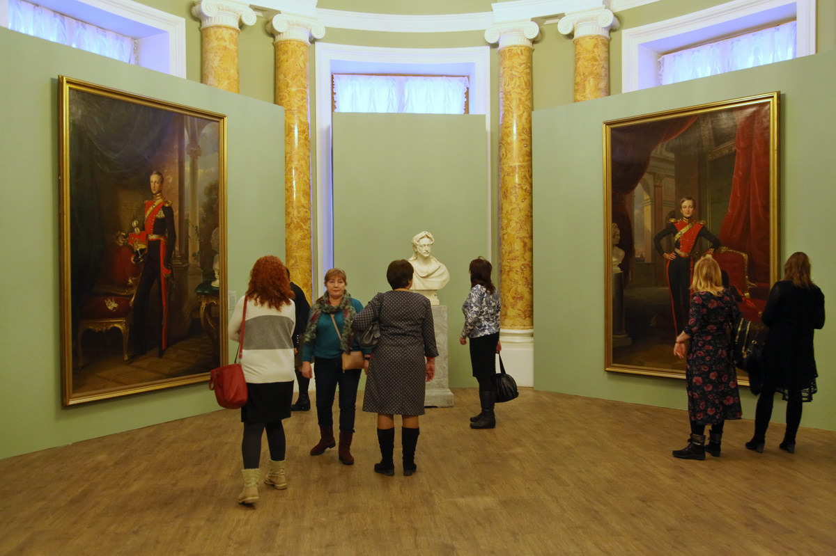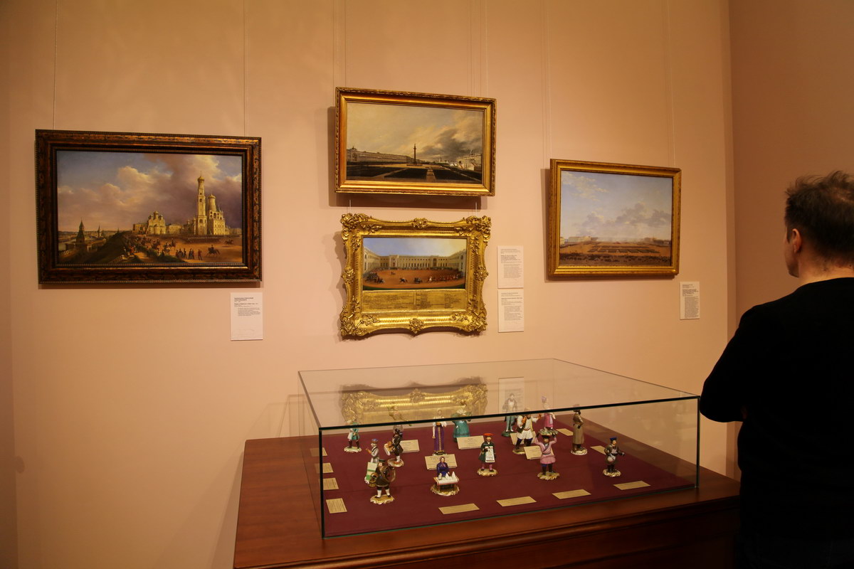В экспозицию выставки вошел целый ряд парадных портретов императора Николая I, его сподвижников (А. Меншикова, А. Бенкендорфа, И. Паскевича и других) и членов царской семьи, выполненных такими художниками и скульпторами, как Джордж Доу, Франц Крюгер, Орест Кипренский, Федор Толстой и др.). Произведения живописи и графики, торжественные монументальные вазы, парадные сервизы, мебель, бронза, нумизматические раритеты и многие другие предметы обстановки, включенные в экспозицию, дают представление о панораме художественной жизни процветающей страны, об изысканных интерьерах царских резиденций и особенностях быта высочайшего двора.