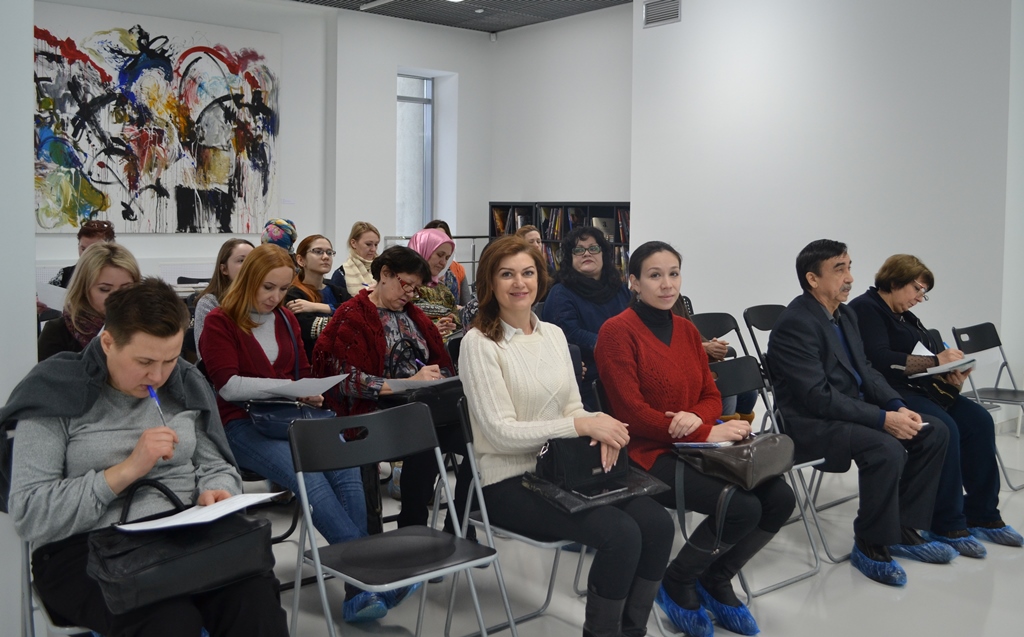 5 февраля в рамках курсов Института дополнительного профессионального образования РТ «Художественная педагогика: направления, формы и методы работы с детьми в условиях детских художественных школ» состоялась встреча преподавателей детских художественных школ Казани, Альметьевска, Елабуги, Набережных Челнов и других городов из районов Республики Татарстан с музейными сотрудниками ГМИИ РТ, на площадке Галереи современного искусства.