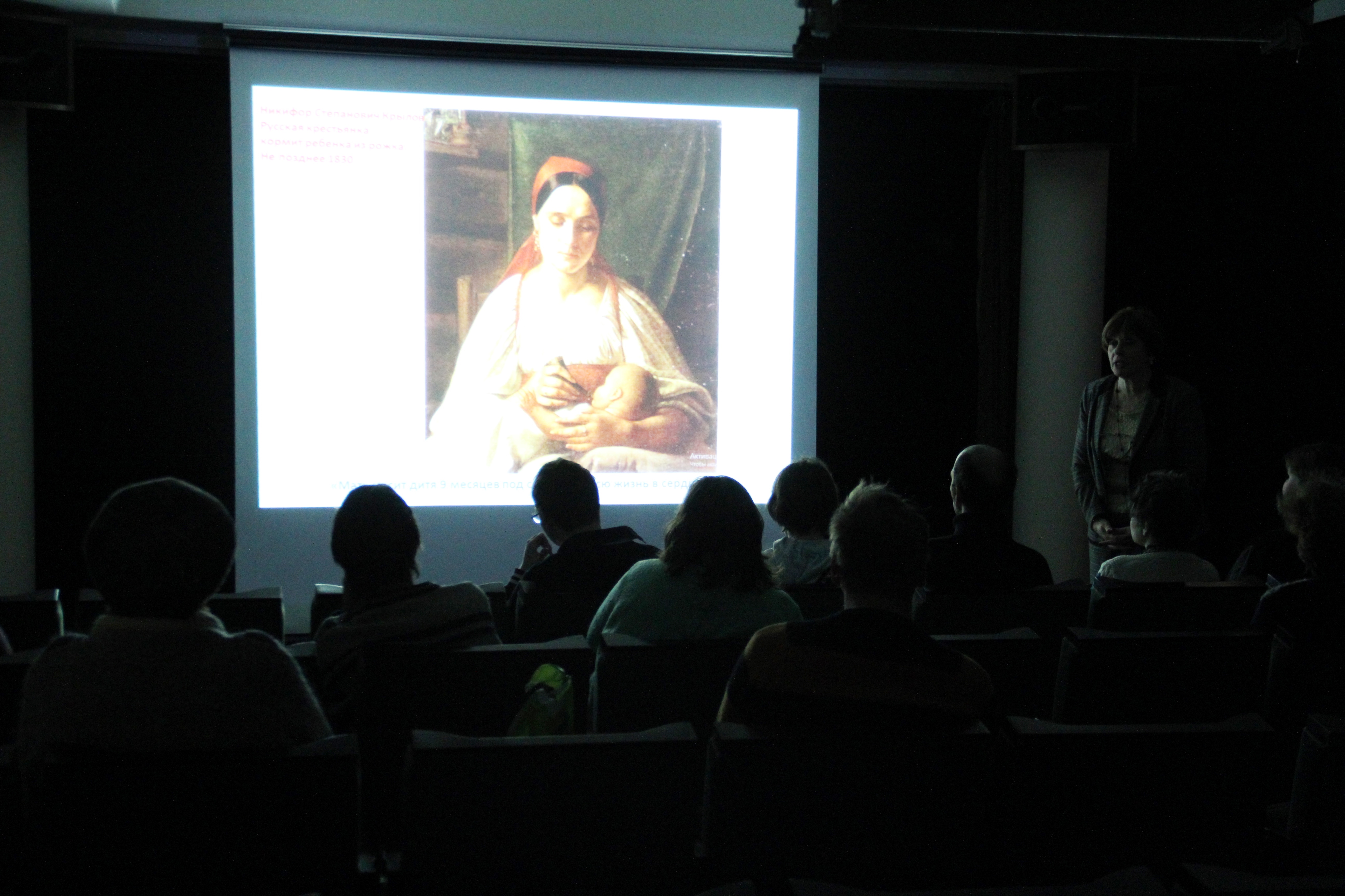 Образ матери с ребенком на руках по-прежнему волнует живописцев. Тема материнства красной нитью проходит в творчестве таких художников, как К.Петров-Водкин, Н. Крылов, И.Пелевин, В. Маковский, А.Венецианов. Посетителям из социального центра реабилитации инвалидов эта тема оказалась близка и понятна.