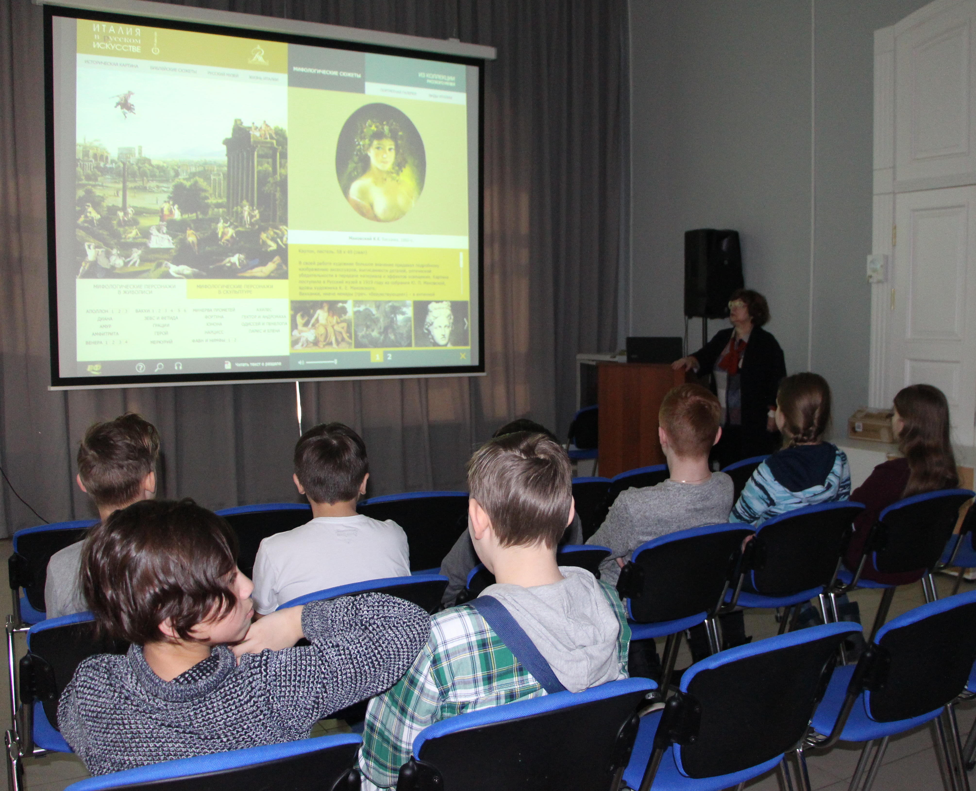 19 марта для 5-х классов в гимназии г. Томска состоялось 3 лекции на тему «Античная мифология в изобразительном искусстве». На лекции школьники познакомились с произведениями мирового искусства (скульптура, графика, живопись, ДПИ) V в. до н.э. – ХIХ в. н.э., в основе сюжетов - события из «жизни» бога Аполлона. Мероприятие было проведено совместно с детским центром музейной педагогики ТОХМ на основе программы "Италия в русском искусстве" из медиатеки проекта "Русский музей: виртуальный филиал". После лекции сотрудники музея провели практическую работу на постоянной экспозиции музея по теме «Боги и герои в искусстве».