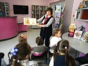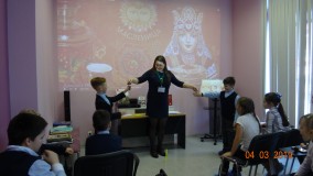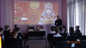 В первый день масленичной недели дети разгадывали загадки про весну, пели песни про блины, играли в веселые шутливые игры. Смотрели и обсуждали картины великих художников: В. Сурикова, П. Брейгеля, Б. Кустодиева. Из рассказа библиотекаря узнали, что подавать к столу на масленицу и как печь блины. Полистали книги из серии «Великие художники». Посмотрели веселый мультфильм «Смешарики. Масленица». В конце мероприятия сделали на память работу – раскрасили изображения фигурки «Дымковской барыни с блинами».