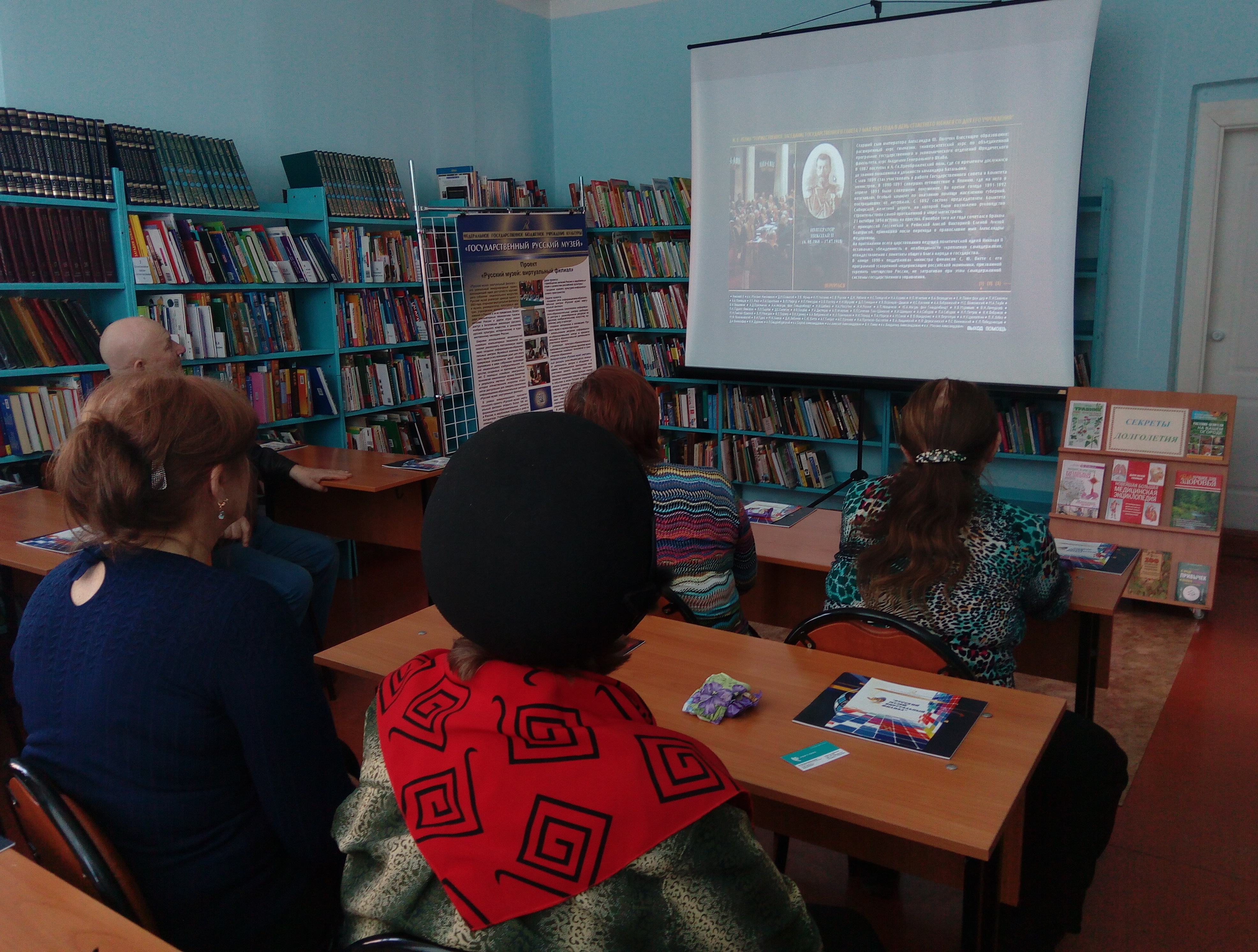 Мероприятие началось с презентации информационно-образовательного центра, где рассказали о том, что из себя представляет проект и какие программы включает Медиатека филиала. Присутствующие приняли участие в виртуальной экскурсии по Михайловскому дворцу и познакомились с интерактивными программами, посвященными картинам и скульптурам знаменитых русских и зарубежных художников. Вторая часть мероприятия была посвящена великому русскому художнику-живописцу Илье Ефимовичу Репину. Читателям рассказали о биографии и творчестве художника, о том, как начиналась его творческая деятельность и какие полотна стали наиболее популярными в мире среди других художников. Благодаря возможностям интерактивной программы пользователи смогли ближе познакомиться с такими картинами Репина как «Бурлаки на Волге», «Торжественное заседание Государственного совета», «Запорожцы пишут письмо турецкому султану», детально рассмотреть людей и объекты, находящиеся на полотнах и узнать краткую информацию о них. После мероприятия присутствующие проявили желание узнать больше об известной картине русского живописца, поэтому для желающих был показан видеофильм из цикла авторских программ директора Русского музея Владимира Гусева «Торжественное заседание Государственного совета».