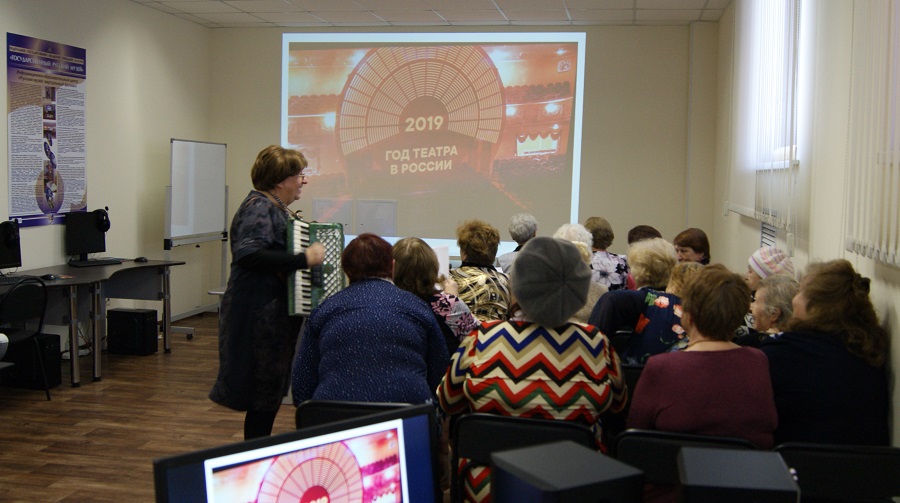 20 марта члены клуба пожилых людей «Огонёк» посетил виртуальный филиал Русского музея. В преддверии  Всемирного дня театра посетители узнали о некоторых художниках, работавших на рубеже XIX – XX веков и принявших активное участие в исполнении театральных декораций и создании эскизов костюмов для театральных постановок. Благодаря разделу Коллекция и разделу Электронный курс истории  Искусство конца XIX – начала XX века на портале «Виртуальный Русский музей» rusmuseumvrm.ru ветераны смогли увидеть работы театральных художников, узнать о Дягилеве С.П. и о его необыкновенных Русских сезонах.