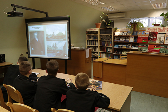 Кадеты 32 класса посетили виртуальный филиал Русского музея в библиотеке корпуса. Арт-час, подготовленный библиотекарем Ждановой Вероникой Валерьевной, был посвящен русским художникам-путешественникам.
