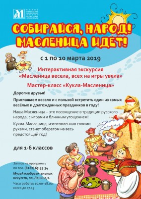 Приглашаем взрослых и детей принять участие в большой праздничной программе «Собирайся, народ! Масленица идет!» С 1 по 10 марта 2019 года.