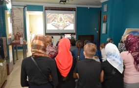 В музее школьники познакомились с тактильными макетами, узнали о письменности Древнерусского государства, начале книгопечатания и гравирования на дереве. Из коллекции Русского музея были показаны картины Виктора и Аполлинария Васнецовых на заданную тему. К слову, Виктор Васнецов работал в былинно-историческом жанре и создавал героев русских сказок и былин, поэтому, уж кто-кто, а он действительно был другом книги. Дети увидели статую Ивана Грозного (скульптор Марк Антокольский), в эпоху которого вышла первая печатная книга. Интересно то, что на скульптуре царь изображен с книгой на коленях.