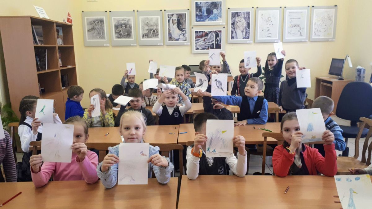 В конце урока дети, пользуясь пошаговой инструкцией, нарисовали грача.