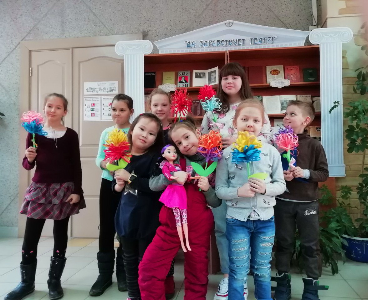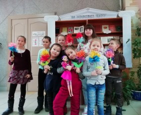 В конце занятия ребята смастерили для своих любимых мамочек подарки. В руках каждого ребенка «зацвел» либо удивительный цветок, либо букет тюльпанов!